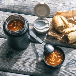 This 550 ml Schwarzwolf food thermos allows you to take your favourite soup or porridge with you on a trip to nature or even to work and keep it hot or cold for a long time. The thermos is complemented by a folding spoon in the cap for your convenience. It is easy to maintain and has a practical design. Packed in