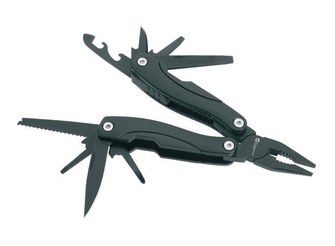 Multifunctional Schwarzwolf tool with 6 functions. It includes knife, saw, pliers, carabiner, bottle opener and Phillips screwdriver. Packed in a gift box. Material: tools - stainless steel, handle – aluminium Recommended printing technology: laser L1 Maximum print size: 20 × 8 mm