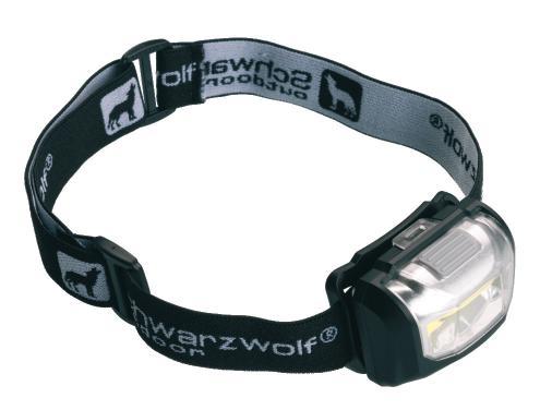 Schwarzwolf head lamp in a black color with COB diode. It has three modes of lightening: weak light, strong and flashing. Included headband rubber with Schwarzwolf logo. Packed in a gift box. Luminosity: 120 lumens