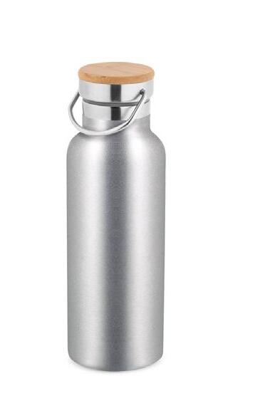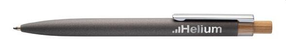 Push button pen in aluminium with bamboo grip. Blue ink.