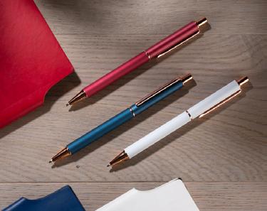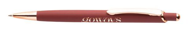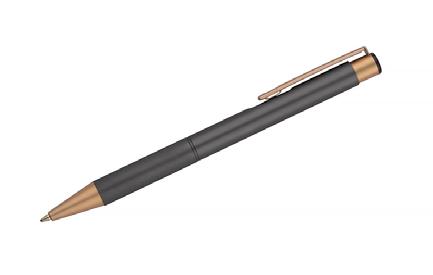 Matte pen with rose gold accents. Body and clip made of metal.