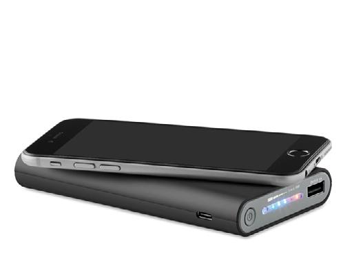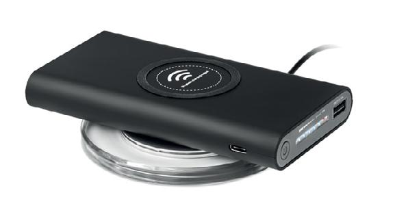 Wireless charging power bank with 8000 mAh capacity. Power bank can be charge by cable or wireless charging. Includes Type C connector. Powerbank output DC5V/2.1A. Wireless output: DC5V/1A. Wireless receiving: DC5V/0.75A Compatible latest androids, iPhone® 8, X and newer.