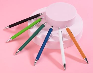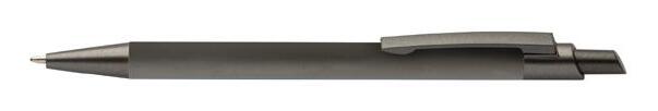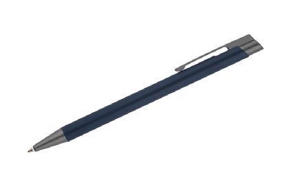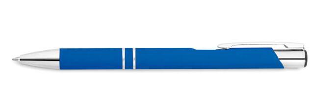 Push button ball pen in rubberized finish. Blue ink.