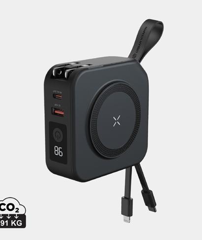 5.000 mAh pocket size powerbank with 5W magnetic wireless charger with a case made out of RCS certified recycled ABS plastic. RCS (Recycled Claim Standard) is a standard to verify the recycled content of a product throughout the whole supply chain. Total recycled content: 20 % based on total item weight.The powerbank contains a long lasting grade A 5.000 mAh lithium polymer battery. The power indicators will indicate the remaining energy level so you always know when to re-charge.; Type-C Input 5V/2.4A; Type C output:5V/2A.4A Item and accessories PVC free. Including RCS certified recycled TPE charging cable. Packed in FSC® mix packaging.