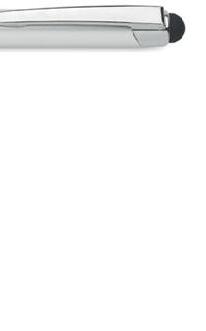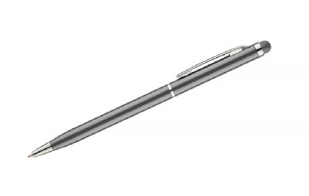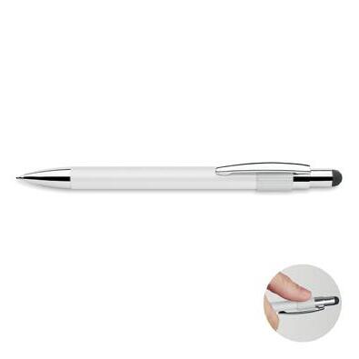 Twist action ball pen in aluminium with stylus and matt finish. Blue ink.