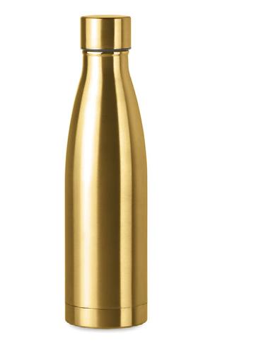Elegant aluminum pen. Gold-coloured finishes. Blue semi-gel refill.