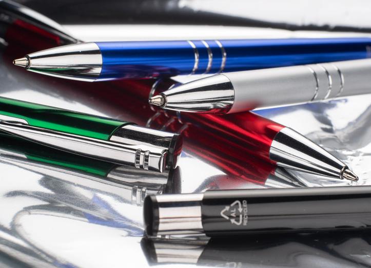 Introducing the bestselling KALIPSO pen with an elegant chrome surface, now available in a new, eco-friendly design: made from recycled aluminium (rKALIPSO). With three stylish rings and a blue refill, this automatic pen combines modern design with functionality. The chrome surface gives it a prestigious look, ideal for professional use. The possibility of logo branding on the surface makes it the perfect promotional tool.