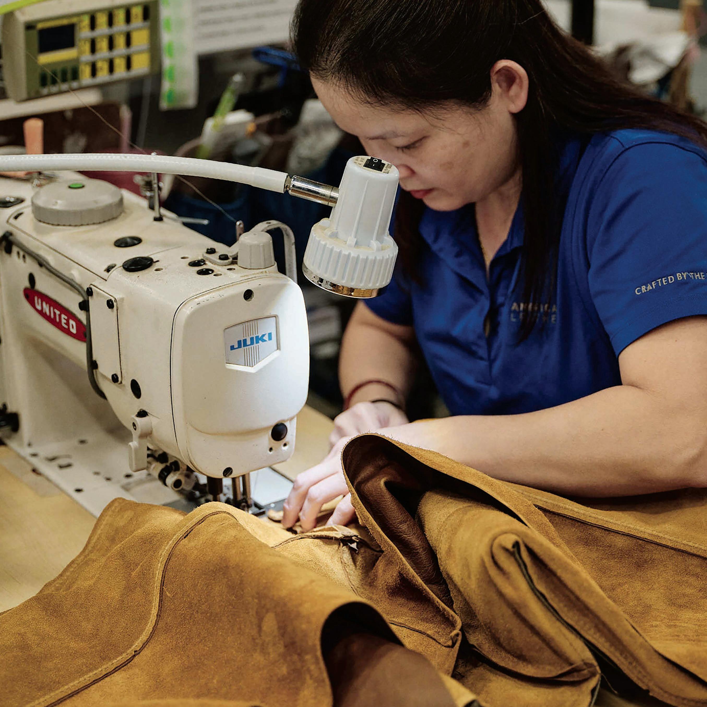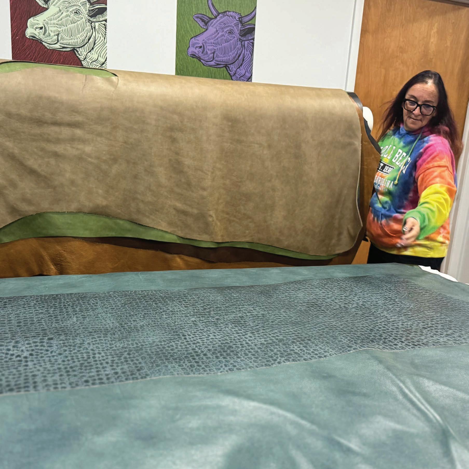all be handled differently. When cutting leathers, an experienced craftsman needs to identify and remove any cow branding or defects in the grain.