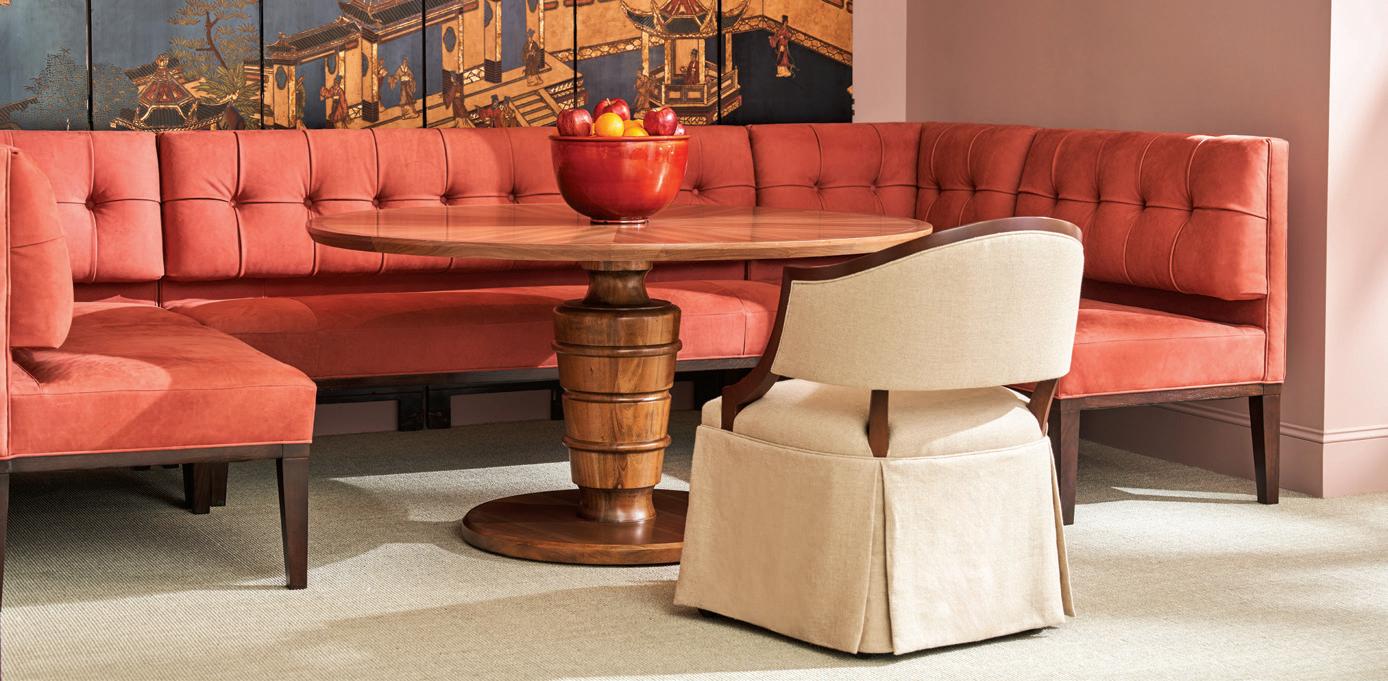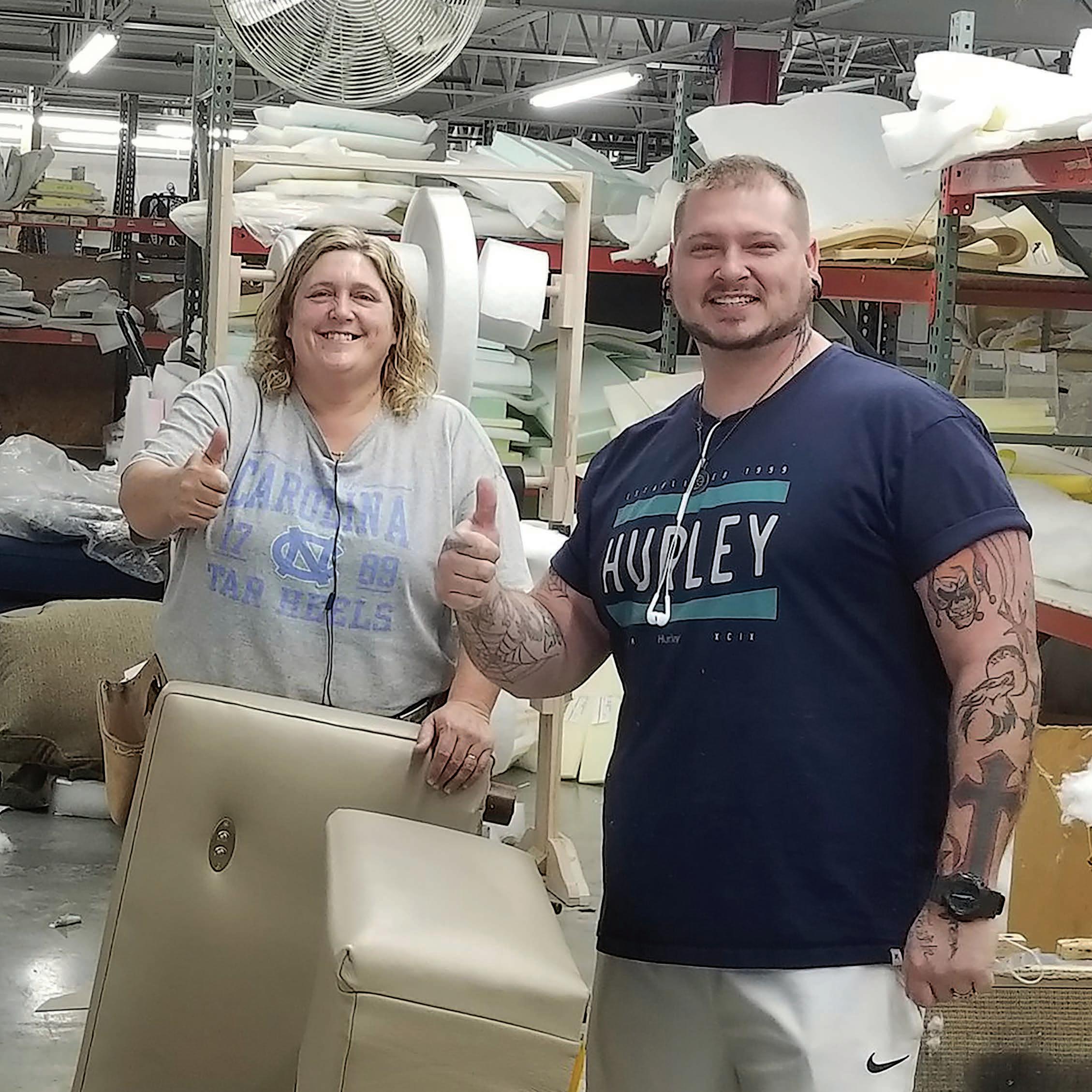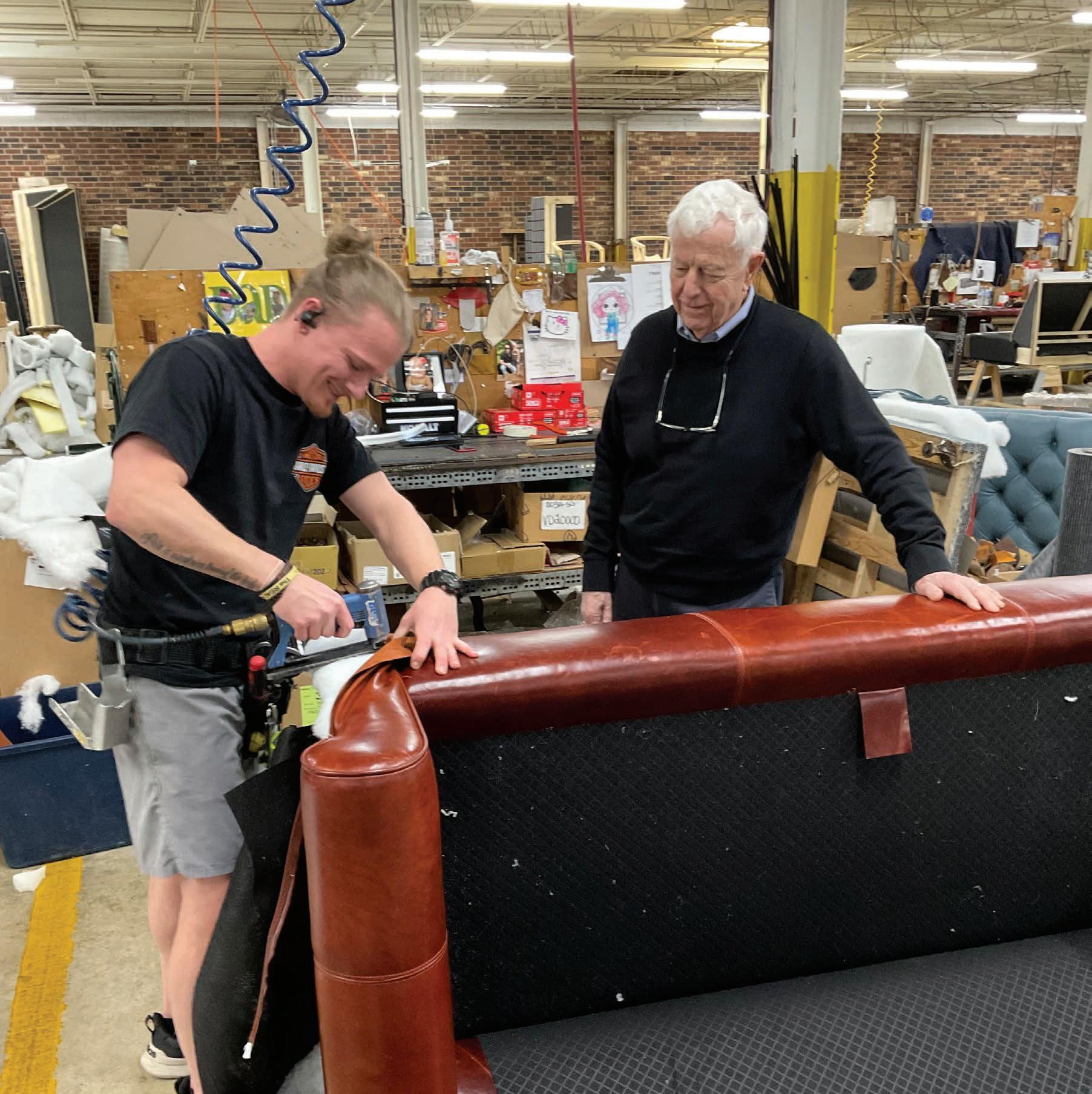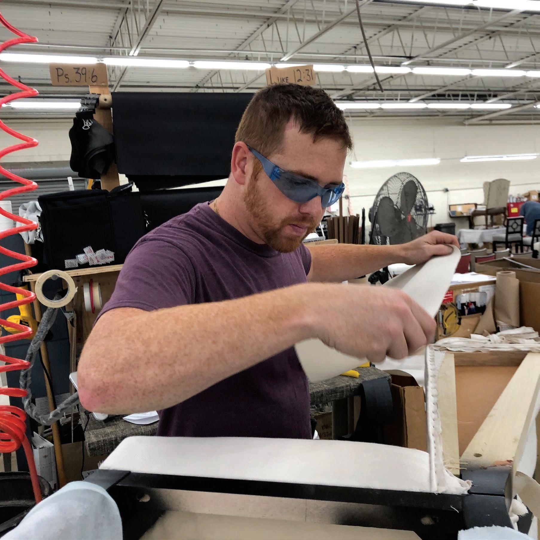A highly skilled craft that involves padding and covering seats, chairs and sofas with fabric or leather or a combination of both. Each piece of custom upholstery is bench made by hand by a team of experts specializing in their area of expertise. Frames are built to order, and fabric patterns are cut by hand one at a time in such a way that allows the patterns to meticulously flow and match perfectly throughout the entire piece. This is another North Carolina quality process that is widely requested around the world.