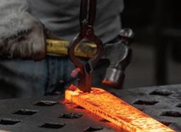 Steel furniture may be shaped using either a power hammer or bent using a custom jig. In order for this to occur, the steel needs to be heated in a forge to approximately 1200 degrees, at which point the steel is soft enough to be shaped. Blacksmiths train for months to acquire the skills needed to master this specialized technique.