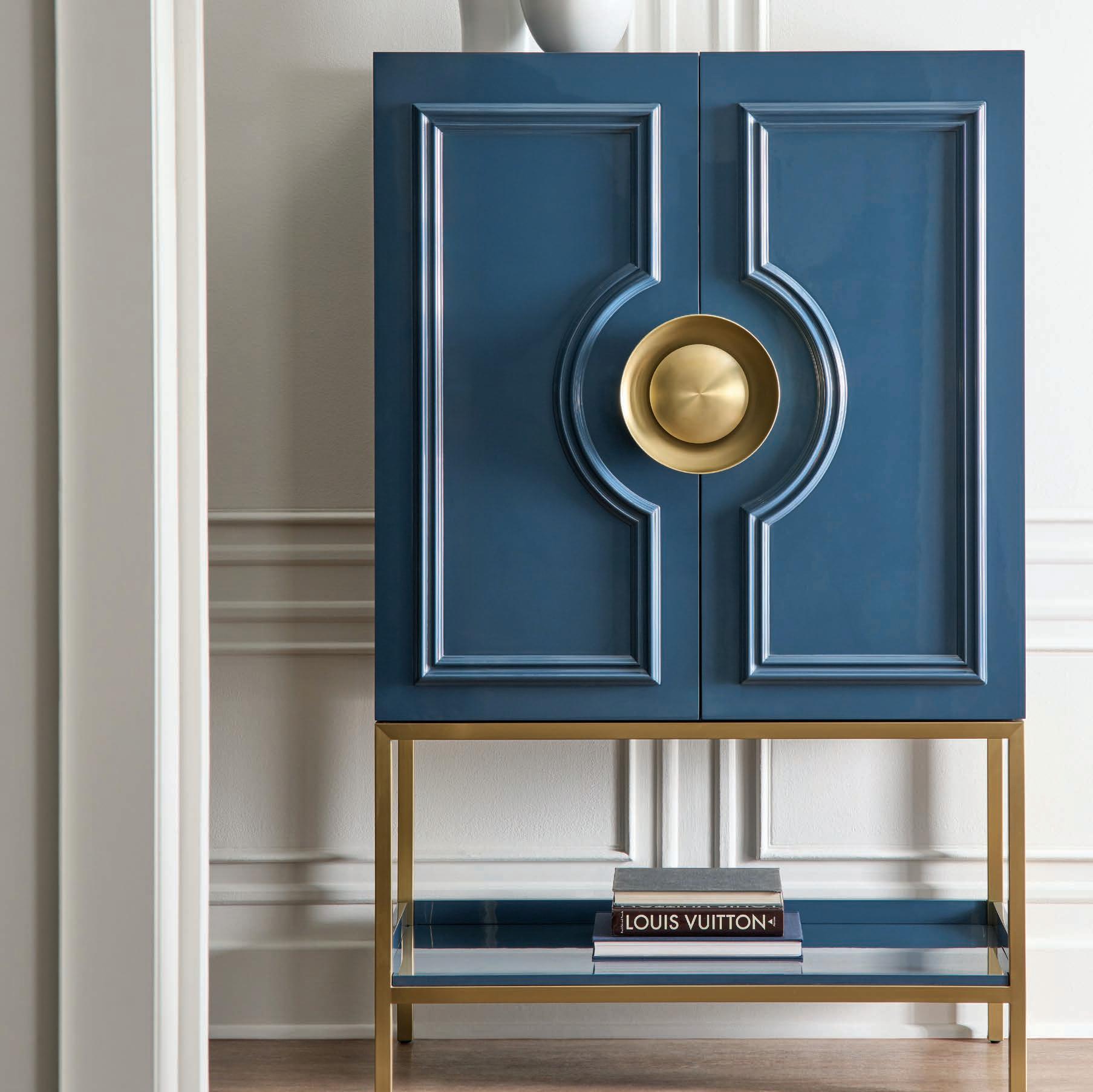 A type of quality finish where decorative nails of assorted sizes, finishes and designs are applied directly onto furniture using high powered nail guns and then refined by human hands for completion. Nail heads not only secure fabric and trim in place, but they also help to finish edges and cover tacks and seams in upholstered pieces. Nail head trim is applied only by highly skilled craftsmen who have studied and learned this technique through years of experience. They are extremely precise in this process.