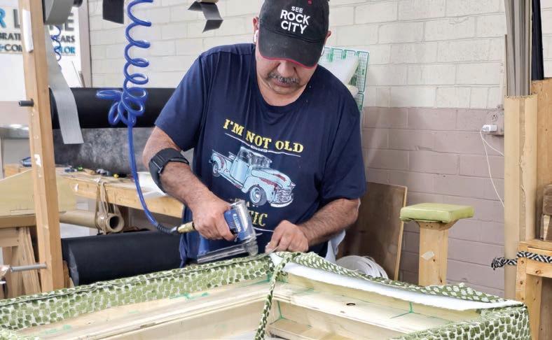 Cutting fabric and leather upholstery is an art form that takes years of experience and a skilled eye for extreme detail. Every piece of furniture calls for a unique cutting pattern and every fabric and leather have their own special qualities that require a talented cutter to thoughtfully combine the two and create a matched piece. When cutting fabrics, stripes, plaids, florals, and plains must