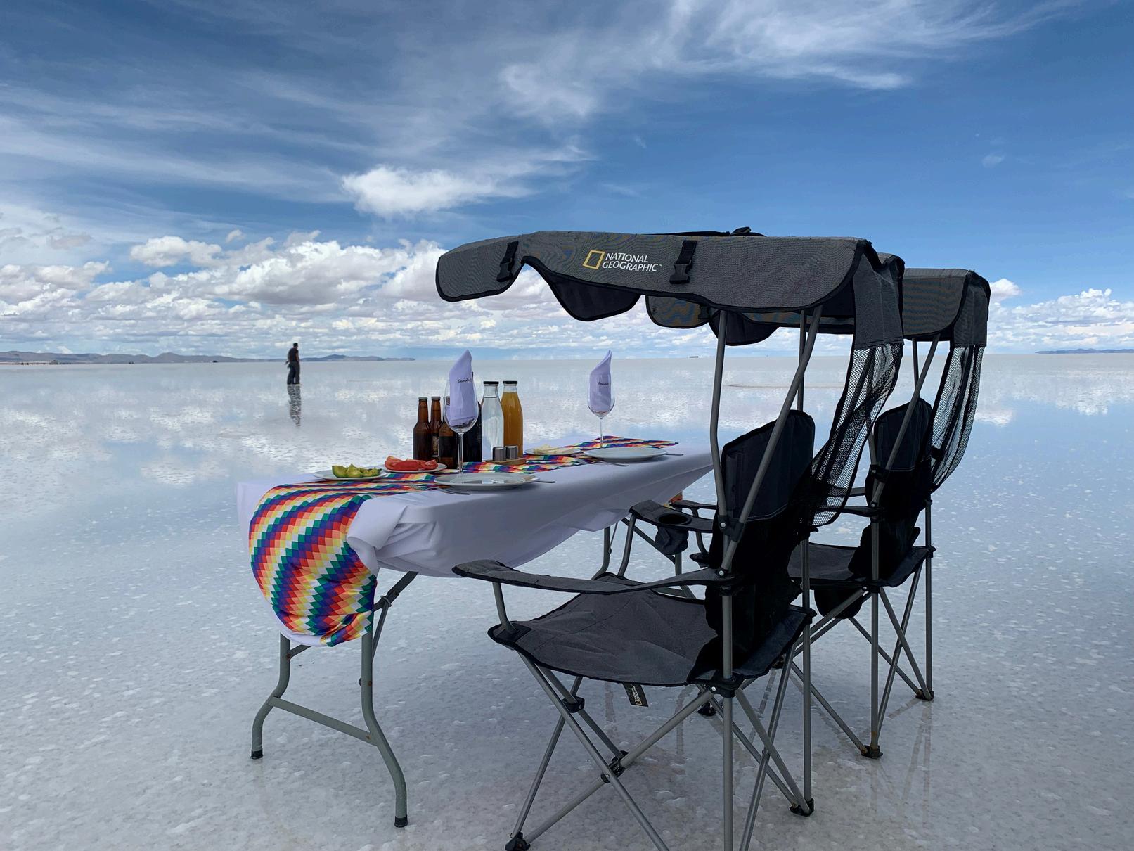 Salida a horas 09.00 am. En el trayecto visitaremos cementerio de trenes, continuamos hacia comunidad indígena de Colchani, observación de elaboración de sal yodada en su forma rustica, ingreso a los desiertos blancos en su plenitud, paisajes típicos de extracción como montones de sal, ojos de sal y primer hotel sal ahora museo de lugar Visita Isla Sajchilla con cactus milenarios, sitio inexplorado aun, caminata de 20 minutos, seguimos hacia Coquesa ubicada a los pies de Volcán Thunupa, visita alrededores y en ella se observa los famosos flamencos rosados. Almuerzo en pleno desierto de sal, por la tarde visitando la Isla Incahuasi, lugar típico con presencia de cactus gigantes en un habitad de roca volcánica. En orillas del salar realizaremos una puesta de sol acompañado de un coctel de coca.