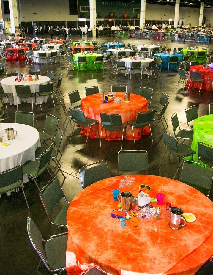 • 24-hour set up of a 5,000-person seated lunch hall inside the Convention Center to be used after breakout sessions with various table styles.