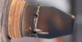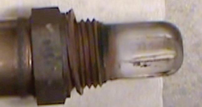 Here’s a close-up of the porous ceramic tip and the precious metal coating of an older oxygen sensor.