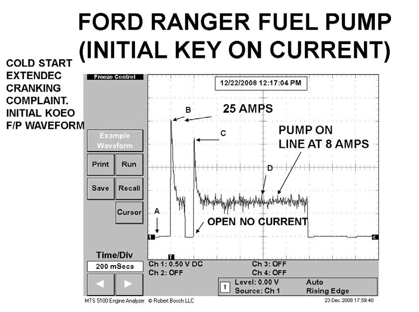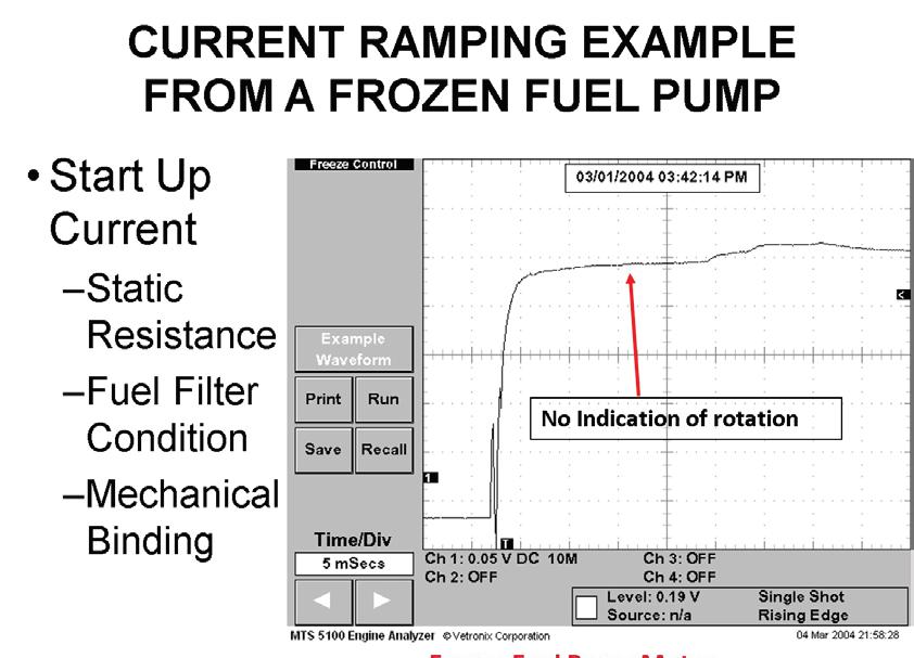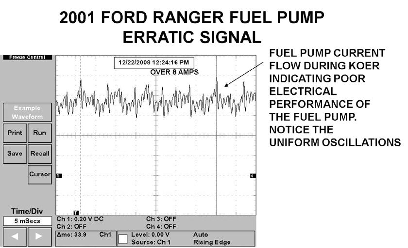 engine making a noise or rattling? With the engine off, disconnect the VCT solenoid connector and then start the engine. If the noise goes away or changes, this indicates a VCT problem. If you suspect the VCT, connect IDS and check PIDs for both banks with the engine at normal temperature. It should be in closed loop. VCT advance error pitch should hover around zero degrees. (A variance of plus or minus 5 degrees is OK.) The pulse width modulation should be the same on both banks. In open loop, the system should be dis abled. Even with sufficient oil in the sump, if oil pres sure is insufficient, there may not be enough hydraulic pressure to work the VCT (indicating a bad oil pump or more likely sludge buildup restricting oil passages). Make sure the engine is at full temperature when you check oil pressure, and be sure to use a good pressure gauge when checking.