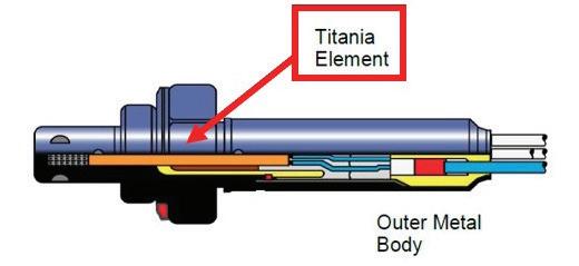 The simplest oxygen sensor uses a porous ceramic sensing element with a platinum covered area for oxy gen detection. The Titania sensor uses a porous ce ramic sensing element made of titanium dioxide and platinum-coated detection areas. The Zirconia sensor uses a Nernst cell for oxygen detection. The Nernst cell is made up of a porous zirconium oxide ceramic