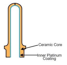 This cut away of the porous ceramic sensor element shows the precious metal coating. If the ceramic core gets contaminated it will not be able to function properly.