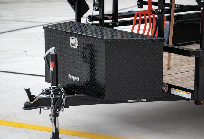 Durable, weatherproof design provides secure storage for hydraulic pumps, batteries, tools, and other trailer accessories.