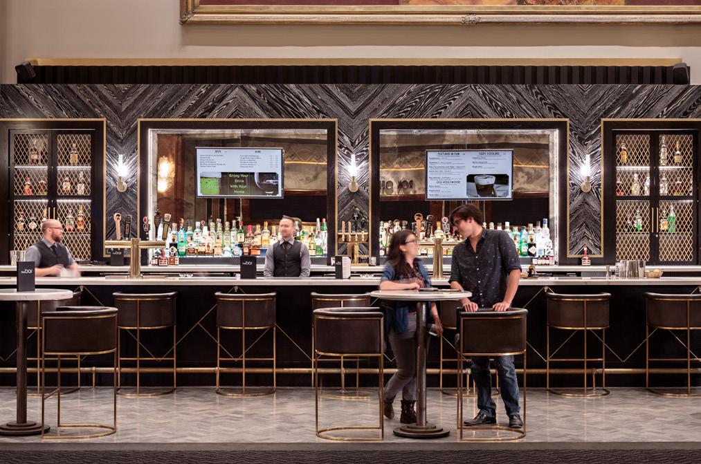 Situated in a high-end retail development, this popular movie theatre wanted to enhance its customer experience by way of refreshing interiors and expanding concession offerings. Deriving inspiration from the vintage glamour of LA’s film scene, our design team introduced signature design elements that were modern yet cohesively fortified the vintage glamour motif. The signature backlit, brass-framed marquee bar has yielded such compelling revenue results that the concept has been replicated in other locations.