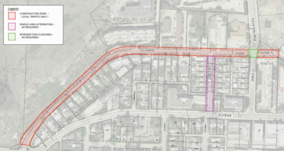 During construction, 32nd Avenue will remain open to local traffic while through traffic will be directed to 30th Avenue via Alexis Park Drive and Bellavista Road.