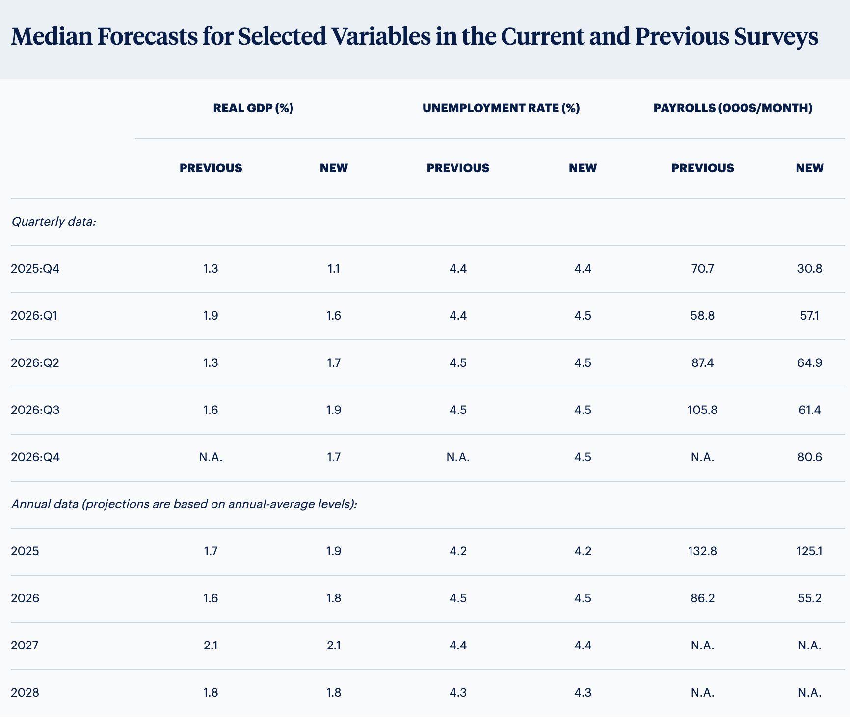 Looking ahead, we expect only modest labour-market strain in 2026. The Federal Reserveʼs latest economic projections (as of December 2025) project the unemployment rate to remain near 4.44.5 percent through 2026. A Philadelphia Fed survey Q4 2025) similarly projected unemployment rising to about 4.5 percent in 2026. Payroll gains are expected to slow further, roughly 57,000jobs/monthonaverageinthefirstquarterof2026versus110,000jobs permonthinthefirstquarterof2025.ConsensusforecastsseerealGDPgrowth atonly1.8percentin2026.Theoutlookfor2026suggestsalabourmarketthat remains soft but stable. Employers are likely to require fewer new workers as growthslows,yetwithoutwidespreadjoblosses.Withhiringsubdued,quitslow, layoffs contained, and labour force participation steady, unemployment is expected to hold near current levels rather than rise sharply. Of course, risks remain:asharperpullbackinconsumerdemandortradeuncertaintycouldforce jobcuts,inwhichcaseunemploymentwouldrisemoresignificantly.