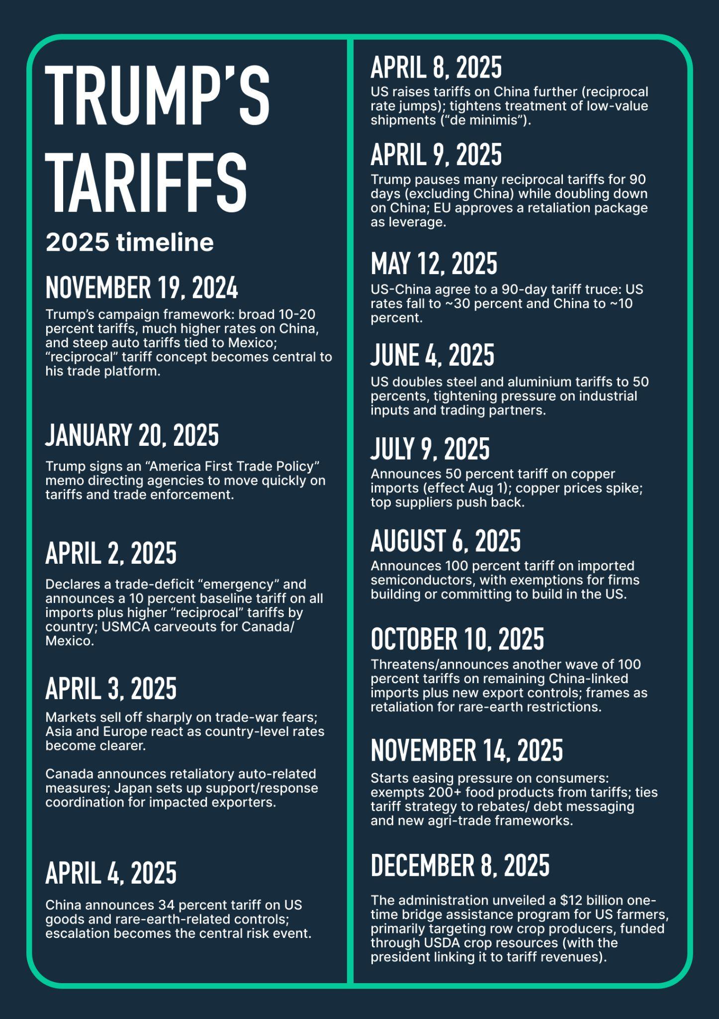 As 2025 draws to a close, the Trump administration's tariff regime appears headed toward a period of relative stabilisation in 2026, though significant uncertaintiespersist.Thepolicies,whichelevatedtheaverageeffectiveUStariff rate to around 1618 percent (the highest since the 1930s), have generated substantial revenue while contributing to import compression and inflationary pressures. We expect limited new broad escalations, with focus shifting to enforcement of existing duties, ongoing negotiations, and potential legal resolutions.