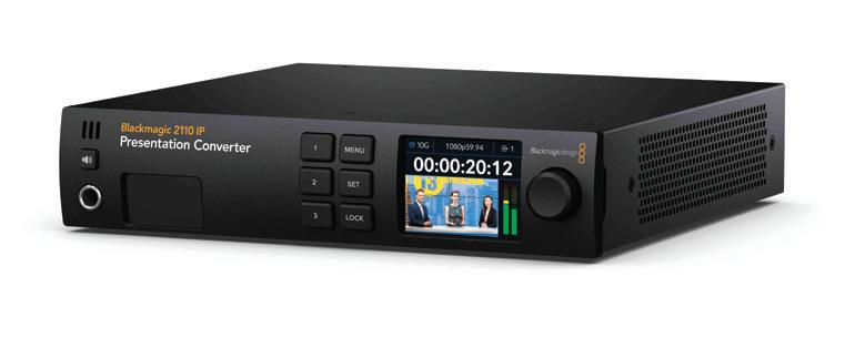 BOOTH W2500 Blackmagic Design’s new range of Blackmagic 2110 IP Converters includes mini and rack-mount models that support Ultra HD using low-cost 10G Ethernet. Designed to integrate SDI equipment into 2110 IP systems for customers in broadcast, live production, and AV, Blackmagic 2110 IP Converters conform to the SMPTE ST-2110 standard for IP video, which specifies the transport, synchronization, and description of 10-bit video, audio, and ancillary data over managed IP networks for broadcast.