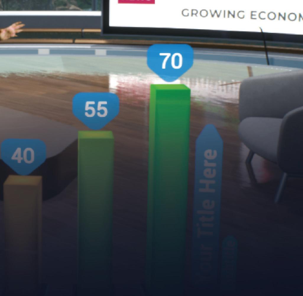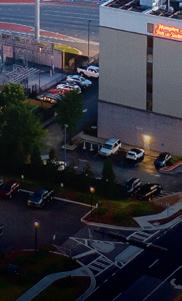 The building itself is more of a researchbased showcase of innovation and not necessarily designed for teaching. However, once inside, the first stop on the tour was the lone general-purpose classroom in the building. It was designed in UNLV’s renowned RebelFlex style, what Alaimo called “the Swiss Army knives of classrooms,” with ceiling microphones and cameras in the back and Zoom videoconferencing capabilities. Nearly 70 percent of classrooms on the UNLV campus are