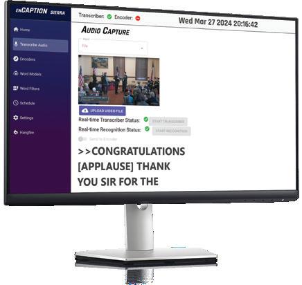 BOOTH W2711 ENCO is at InfoComm 2024 with enCaption Sierra, the next generation of the company’s groundbreaking enCaption solution for fast, accurate automated conversion and delivery of captions in AV and broadcast environments. enCaption Sierra continues the story of innovation and success in applying AI and machine learning to live captioning, with new benchmarks attained in speed and accuracy same as each prior generation. For the first time, enCaption Sierra brings ENCO’s marketleading automated captioning technology together with an SDI captioning encoder to create an allin-one solution for onprem environments and containerized deployment options for cloud.