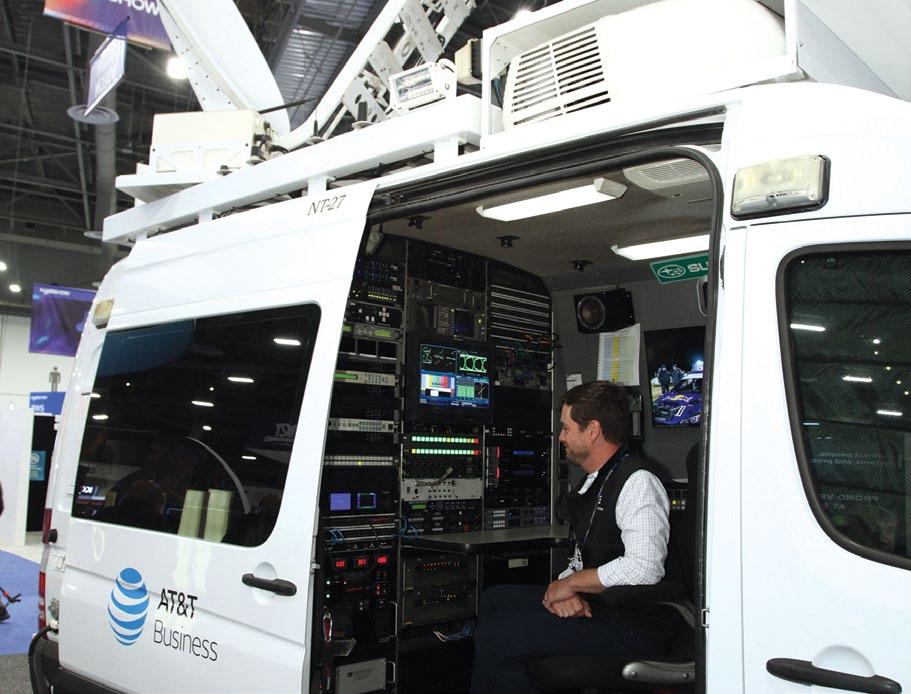 3 Joy Chu (L) of Well Buying Industrial Co. in Taiwan, chats with attendee Fabienne Van Berkel over a colorful display of customizable buttons. 4 Subaru and AT&T Global Video Solutions team up to broadcast from places where there’s no connectivity..