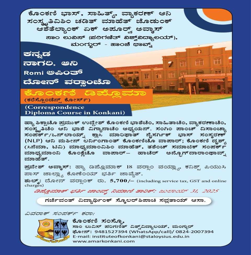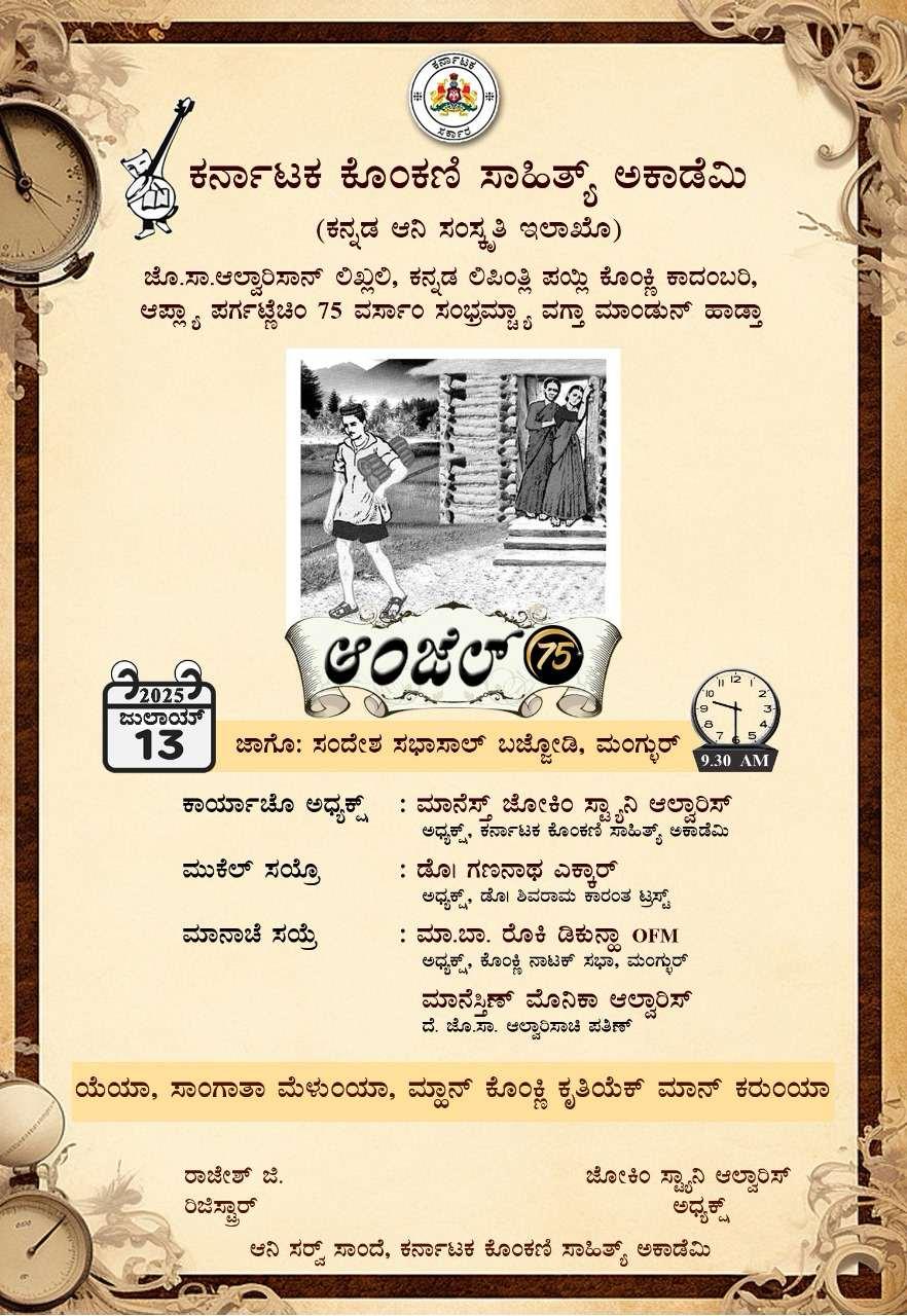 The first Konkani Novel in Kannada script, Aangel , is completing 75 years in 2025. It was published in 1950 at Mangalore. Joachim