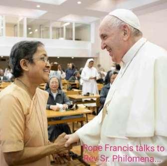 LetusreadwhatSr.Philomenasays about thePope's visitin her own exciting words: " On October 22, PopeFrancisgaveusasurprisevisit and when I met him, he told me to pray for Modi's meeting with him soon; seeing me in saree he said I