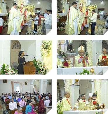 The English Solemn Mass was officiated by the Emeritus Bishop AloysiusPauldSouzawiththeguest priests. Fr Kenneth Crasta, the assistant director of St Joseph engineering College preached the homily on the compassion of our Lord which has been highlighted in thereadingsofSundayandevenin the life of our lady of Miracles, the PatronofMilagresMangalore. Those associated in building the unityofthechurchandeducational institutions were honoured. The choirs sang the melodious Hymns, and the devotees attended in large numbers.