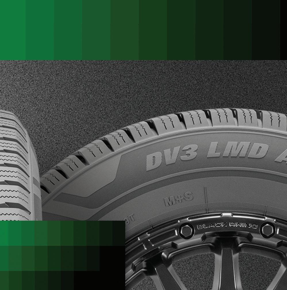 Formulated axisA3™ silica compound for traction in low temperatures and all surface conditions. Three-Peak Mountain Snowflake Rated (3PMSF) for reliable control in severe snow and ice.