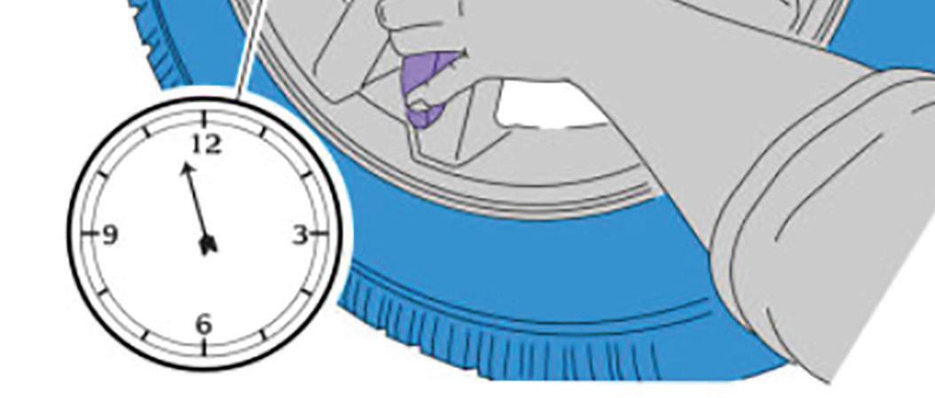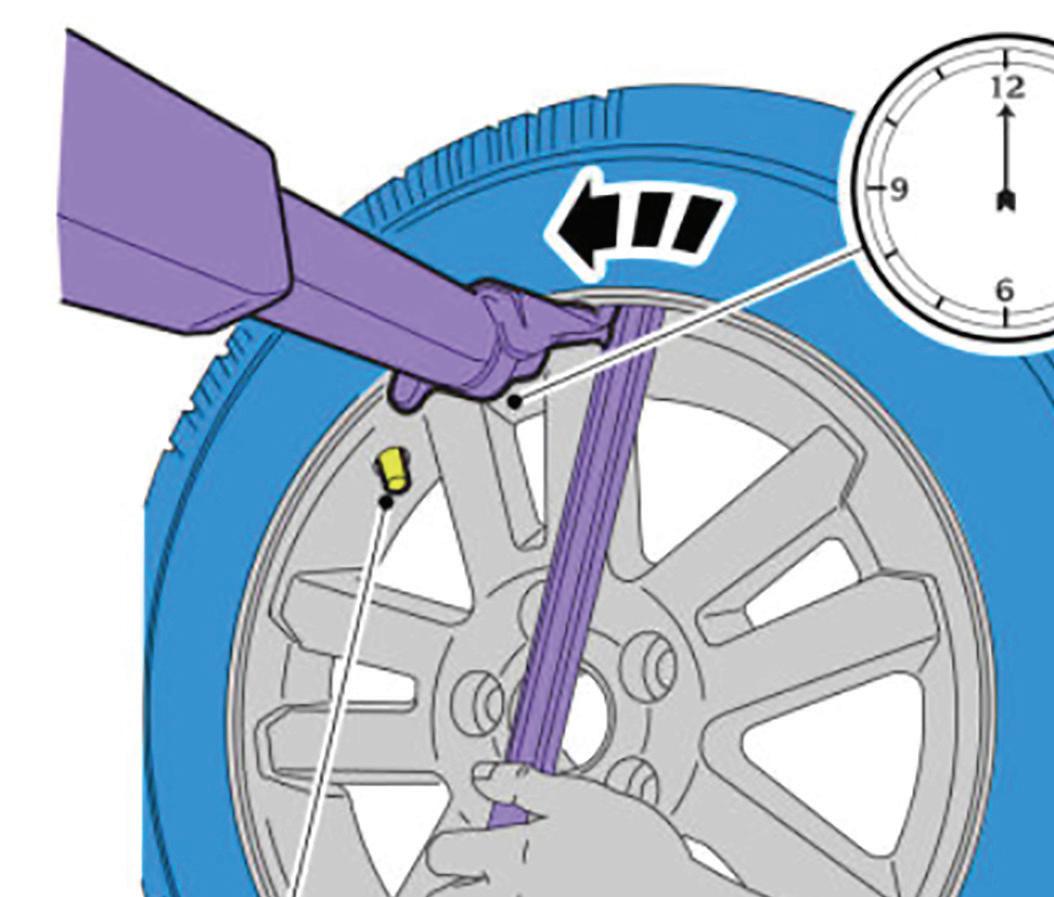 1. For a paddle-type tire machine, position the valve stem at the 12 o’clock or 6 o’clock position and the paddle at the 3 o’clock position. 2. For a roller-type tire machine, align the valve stem with the roller at any position.