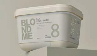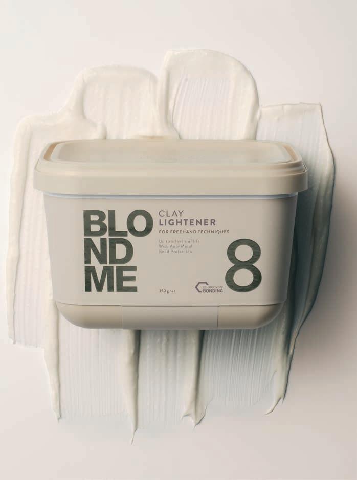 Su mūsų BLONDME balinamuoju moliu ir Premium aktyvatoriais kūrybiškiau patobulinkite šviesius plaukus laisvos rankos technika, vietoje klasikinio sruogelių dažymo su folija.