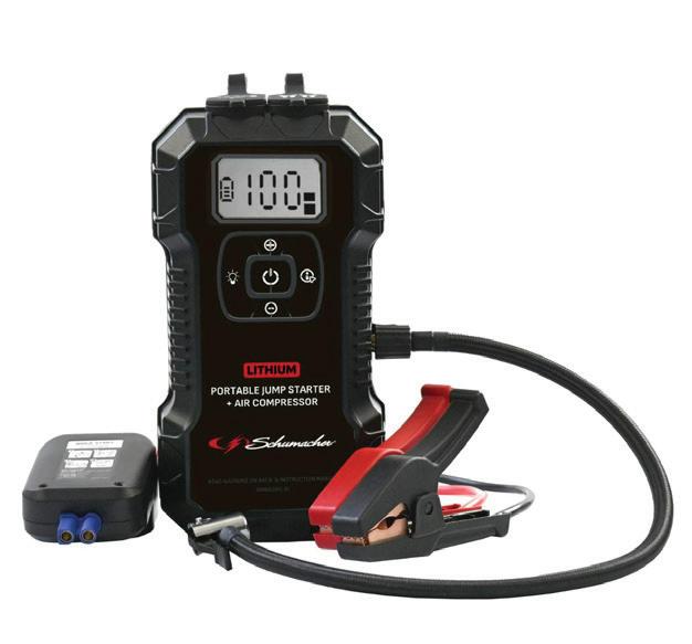 The Portable Jump Starter and Air Compressor, No. SL1686, from Schumacher Electric is a compact, lithium-powered, multi-function device designed for automotive, outdoor, and emergency use. It delivers 1,800 peak amps for 12V jump-starting and features fast-charging USB-C and USB-A ports, a three-mode LED worklight (SOS, strobe, flashlight), and a high-efficiency air compressor with a maximum pressure of 150 psi. The compressor includes four inflation modes and a custom setting, with automatic shutoff at the preset pressure.