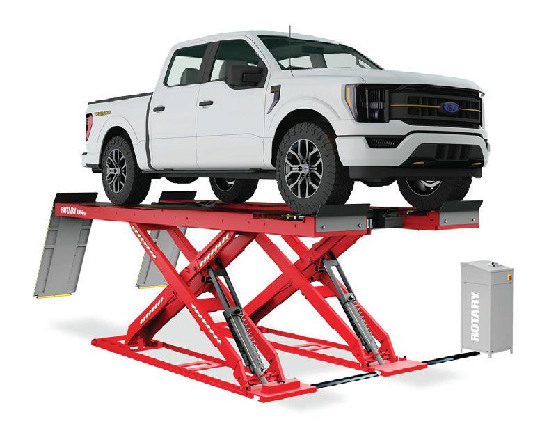 The Rotary Lift XA14 Alignment Scissor Lift has a 14,000-lb. capacity and is designed for shops where floor space is at a premium. Over 34% narrower than a standard four-post lift, it allows for recessed or surface-mount installation to maximize shop layout flexibility. The open front and rear design provides unobstructed access to vehicle adjustment points, making wheel alignments and repairs easier for technicians. The lift features two 7,000-lb. rolling jacks, adjustable turning radius gauges, air-actuated rear slip plate locks, and longer ramps. With 72” of vertical rise, it supports comfortable access for repair work while minimizing bay space requirements. For more information visit FleetMaintenance.com/55329573
