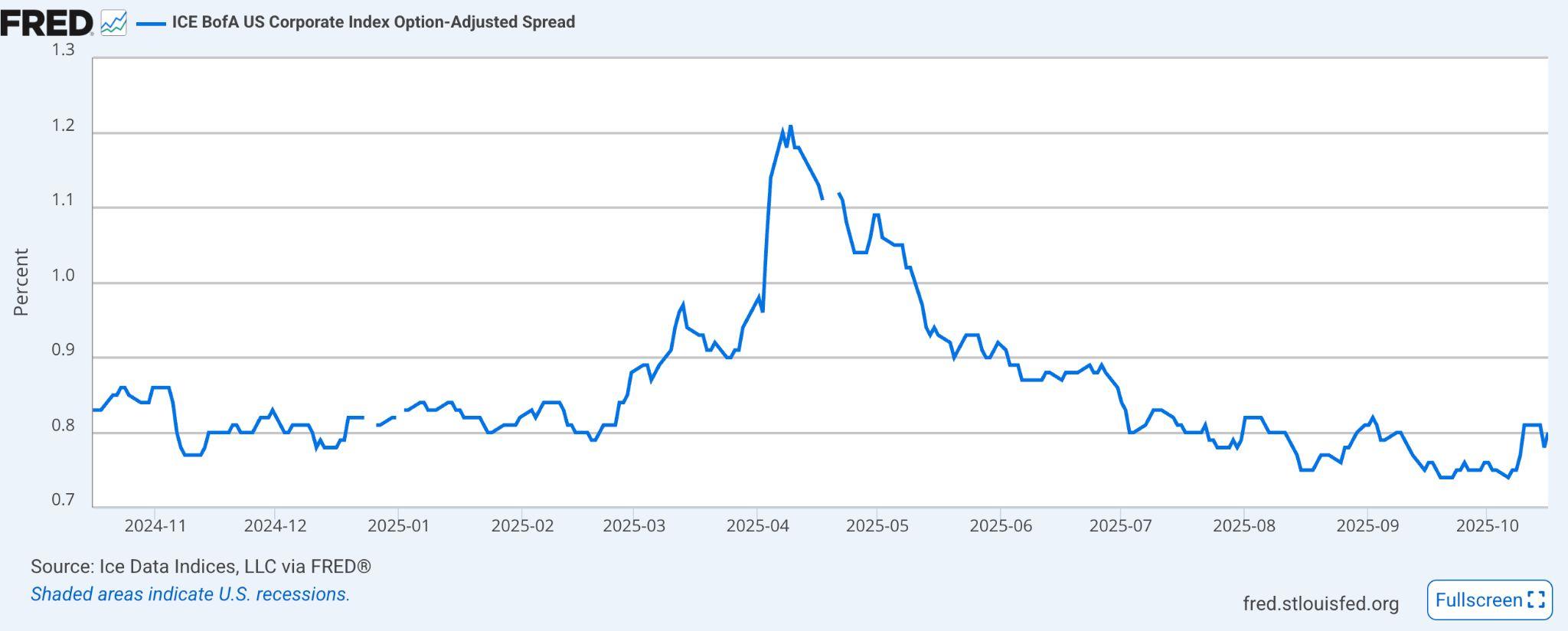 Thịtrườngtráiphiếuphảnánhrõrệtsựbấtổnchínhsách:LợisuấttráiphiếuKho bạc10nămđãbịkẹttrongphạmvikhoảng23điểmcơbảnthángnày,runglắc giữa3,94và4,17%khinhàđầutưđiềuchỉnhvịthếtheonhữngdựđoánvềFed. Cổ phiếu vẫn được mua vào một cách thận trọng dựa trên giả định lãi suất sẽ giảm, nhưng nếu chính sách bị trì hoãn hoặc đảo ngược, một đợt định giá lại thảmkhốccóthểxảyra.MộtbấtngờtừFedtheobấtkỳhướngnàocũngcóthể kíchhoạtsựhỗnloạnđatàisảntừngthấytrongsựcốFed mắclỗitruyềnthông năm2018,khithôngđiệpkhôngrõràngđãdẫnđếnmộtcuộctháochạykhỏirủi rotrêntoàncầu.