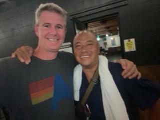 Peter Bogue was in Hawaii in August 2022 with his family and connected with classmate Mikey de Lara.