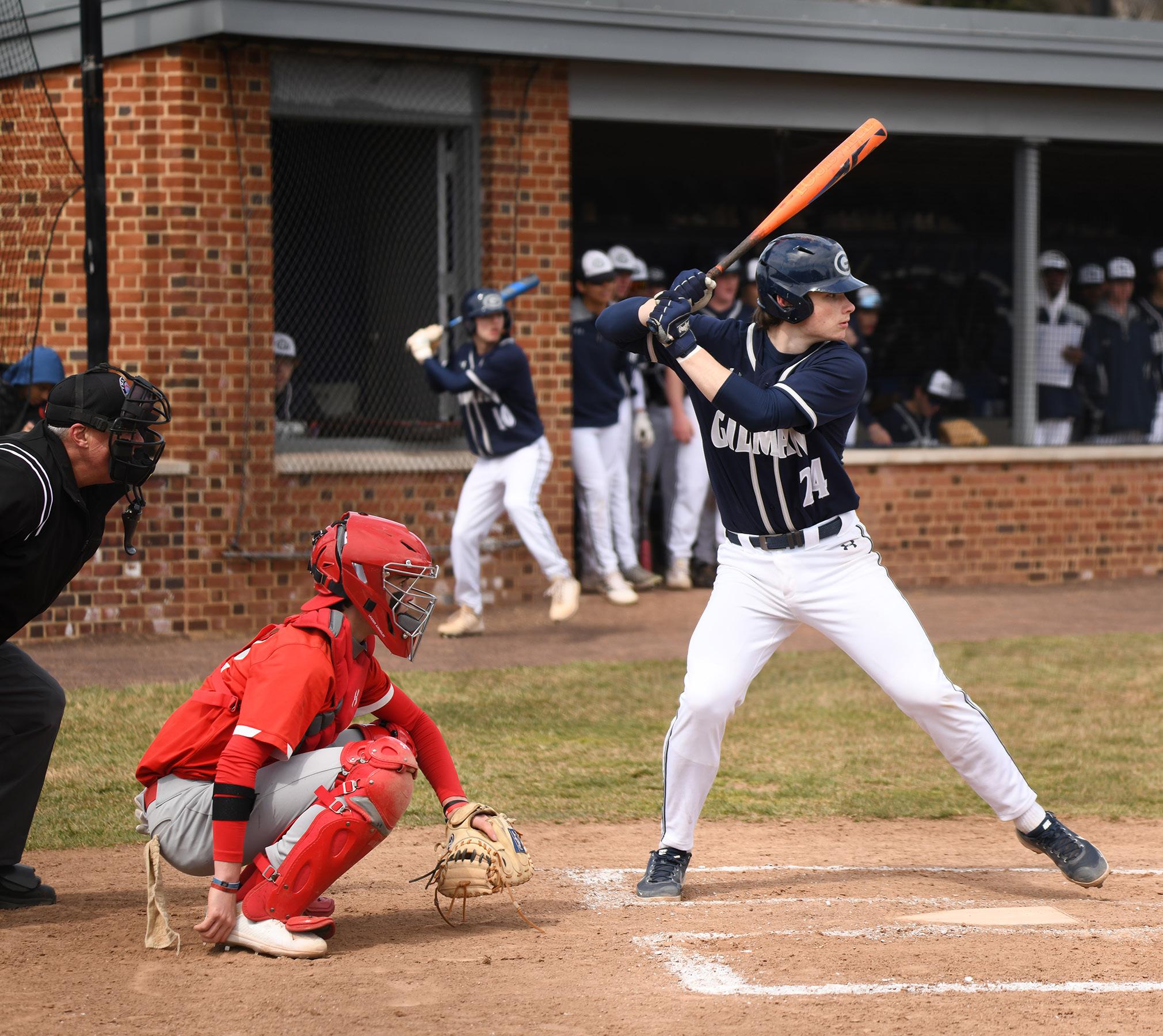 Orioles broadcaster Brett Hollander ’03 and White Sox outfielder Gavin Sheets ’14 caught up in the Chicago dugout before an early season game.