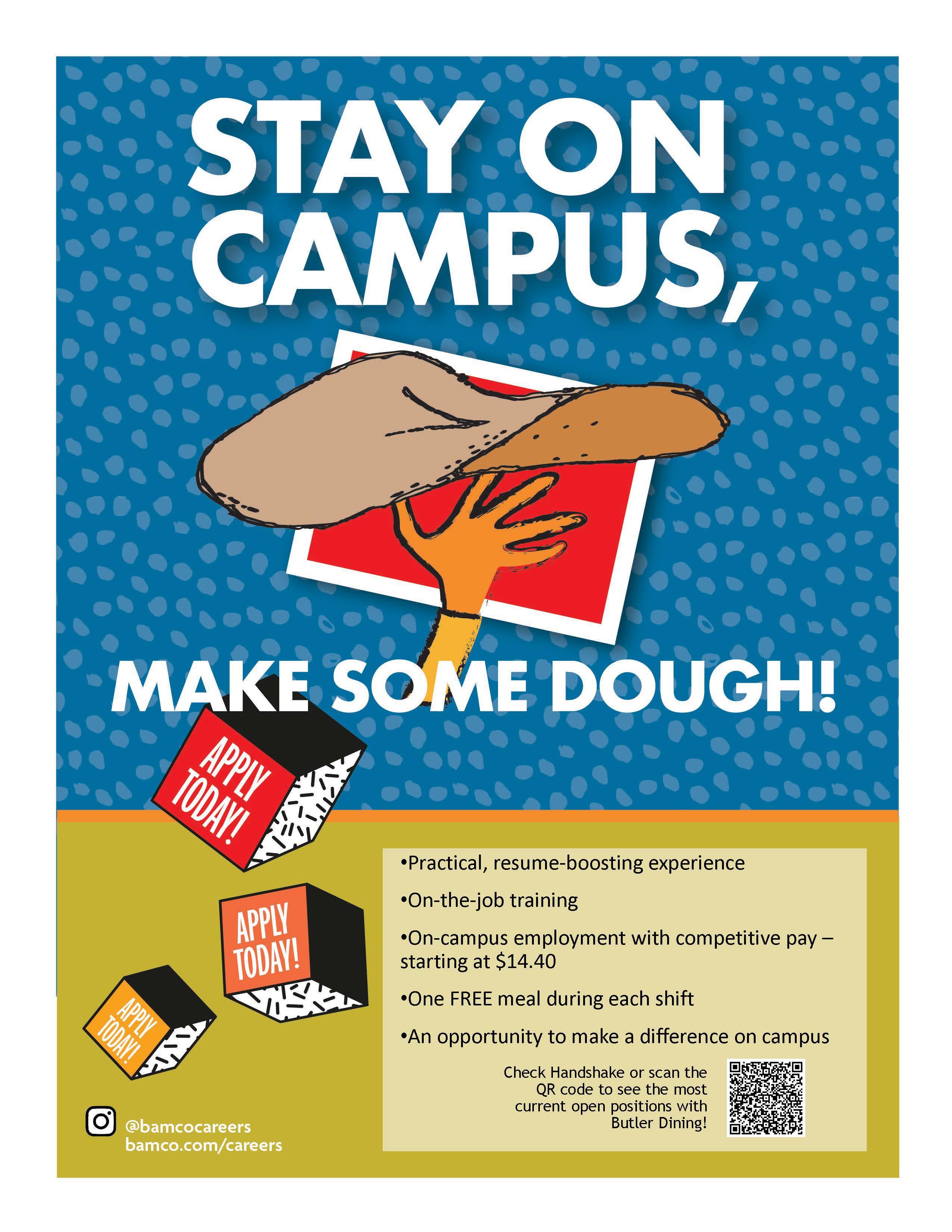 Joining the Dining Committee gives students an opportunity to impact dining services for all students, collaborate with peers, interact with Butler Dining professionals, and network with influential Butler faculty. Members will receive $40 in Flex Dollars each month Dining Committee meetings include a free meal