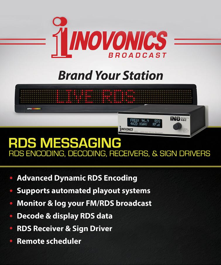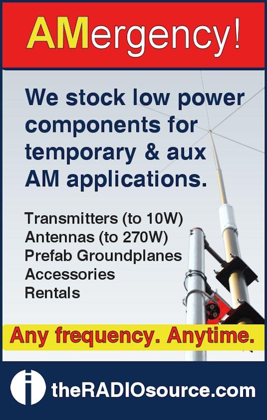 On a related note, bipartisan bill H.R. 5324, the NOAA Weather Radio Modernization Act of 2021, passed the U.S. House almost unanimously and as I write it is in the Senate, awaiting approval. All broadcasters should contact their senators and ask them to pass HR-5324 before the end of this year. It directs NOAA to allocate more of its current budget to improve NWR by replacing outdated copper-wire transmitter links with more reliable microwave, IP and satellite comms, bringing this 60-yearold broadcast network into the 21st century. Thanks for helping us build a Weather-Ready Nation.