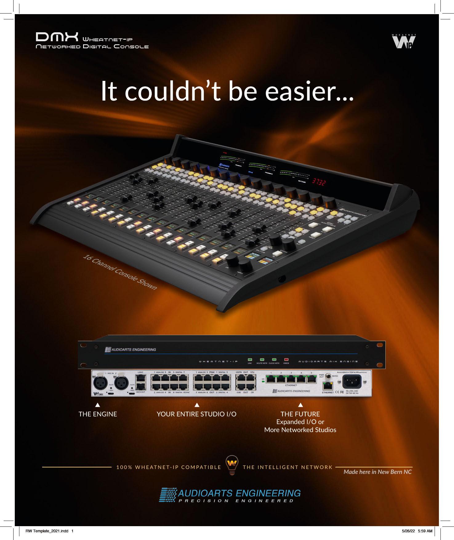 THE INTELLIGENT NETWORK 100% WHEATNET-IP COMPATIBLE PRECISION ENGINEERED Made here in New Bern NC THE ENGINE YOUR ENTIRE STUDIO I/O THE FUTURE Expanded I/O or More Networked Studios