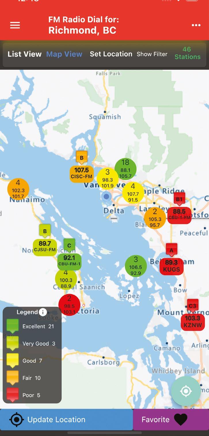 Langan: It takes your location, be it anywhere in North America, and delivers an accurate list or map of the FM radio stations you are in reliable listening range of.