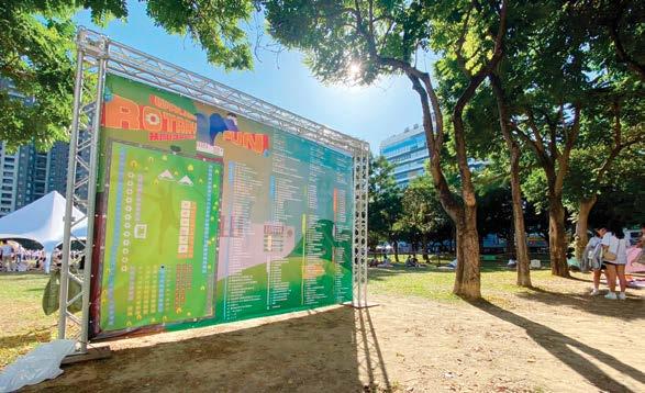 戶外的扶輪日開幕式也將進行和平 倡議的宣誓,並由各區社友進行節目表 演。另由分區助理總監帶領分區社友進 行趣味競賽,透過團隊 合作爭取榮譽。大家可以一起在網 美時尚野餐區進行野餐,欣賞精彩節目 表演,現場有美食、伴手禮、文創、職 業服務攤位及扶輪公益網愛心攤位,還 有親子遊戲/桌遊攤位,可以吃得盡興、 玩得開心。希望藉由扶輪日宣揚扶輪理 念與精神。