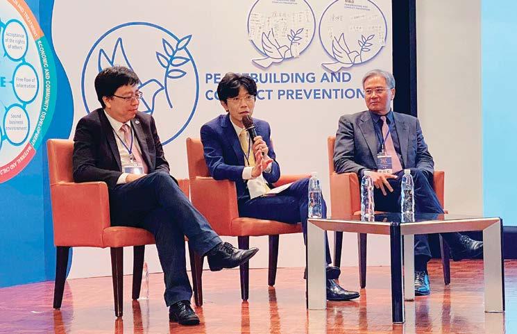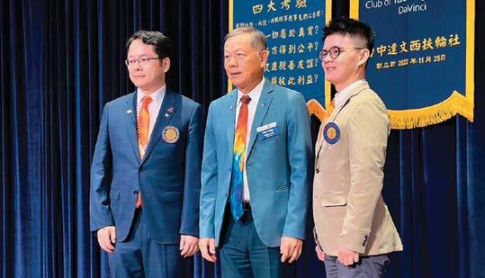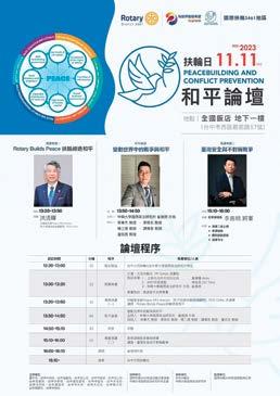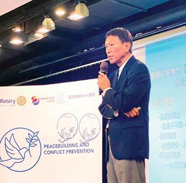 俄戰爭、以巴衝突,及亞太區域和平議題,去探討和平及 防止衝突的可能性。這場扶輪和平論壇並開放一般民眾及 學生到場聆聽參加,促進扶輪社友與非扶輪社友ㄊ共同對 話來探討如何締造和平的議題。