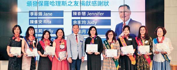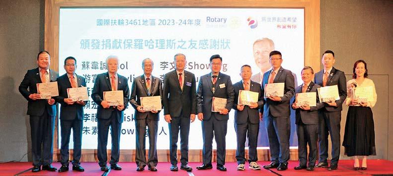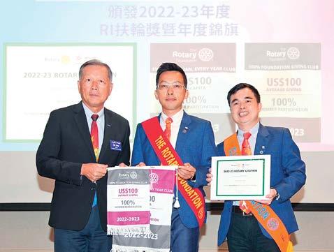 AKS肖像廊上很多位熟悉的台灣扶輪領導人, 令人振奮。全球共有1,000多名AKS會員,台 灣就佔了152位,為全球AKS會員人數第3高 的國家,截至2021-22年度台灣捐款總額已超 過1,600萬美元,持續維持世界排名第五,足 證台灣扶輪人的愛心領先世界,對台灣扶輪社員 在一年能創下超過20位AKS會員的歷史紀錄 表達最高敬意與感謝。