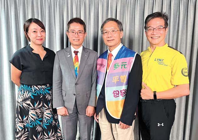 多元、平等、包容,是國際扶輪 與社友們深植在DNA中的理念!國 際扶輪與聯合國相呼應籲,推廣在 SDGSs中的17項永續發展目標,其中 之一就是DEI。今年是3461地區成立 DEI委員會第二年,主委的任期一任三 年,在第一年Dentisit總監成立DEI委 員會,主要是在總監公訪時用易拉展 大型海報宣傳,還有扶輪日設攤位有 獎徵答宣導,也舉辦DEI論壇,其目 的是讓大家認識DEI。今年進入DEI委 員會成立第二年,委員會的委員由5位 委員增加到8位,委員製作DEI宣傳背 心,讓每位委員在總監公訪時宣導。
